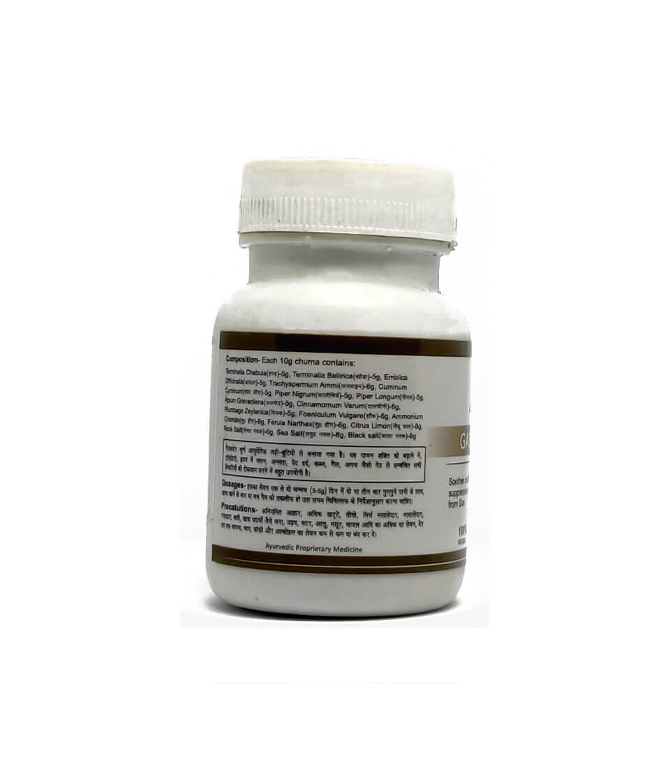 Gas Cure Churna is a blend of ayurvedic herbs that helps in the treatment of gastric disorders. It is a wonderful combination of natural herbs that help to give relief from gastrointestinal problems. It helps in the digestion of food. It gives quick relief from acidity and heartburn. It is a very good herbal remedy for colic pain, flatulence and heaviness of abdomen. Severe stomach gas problem causes uneasiness and discomfort. It stimulates the functioning of gastric organs and prevents constipation and diarrhea.