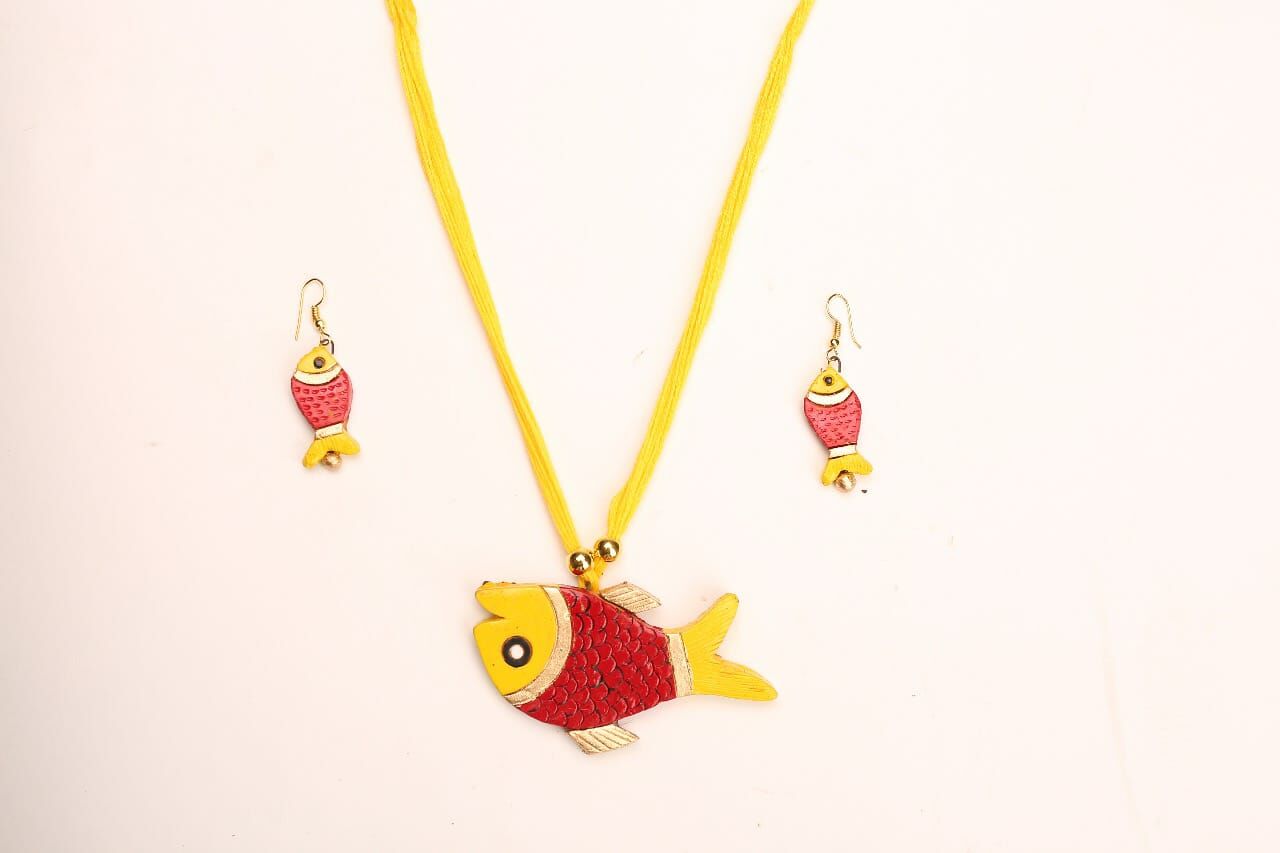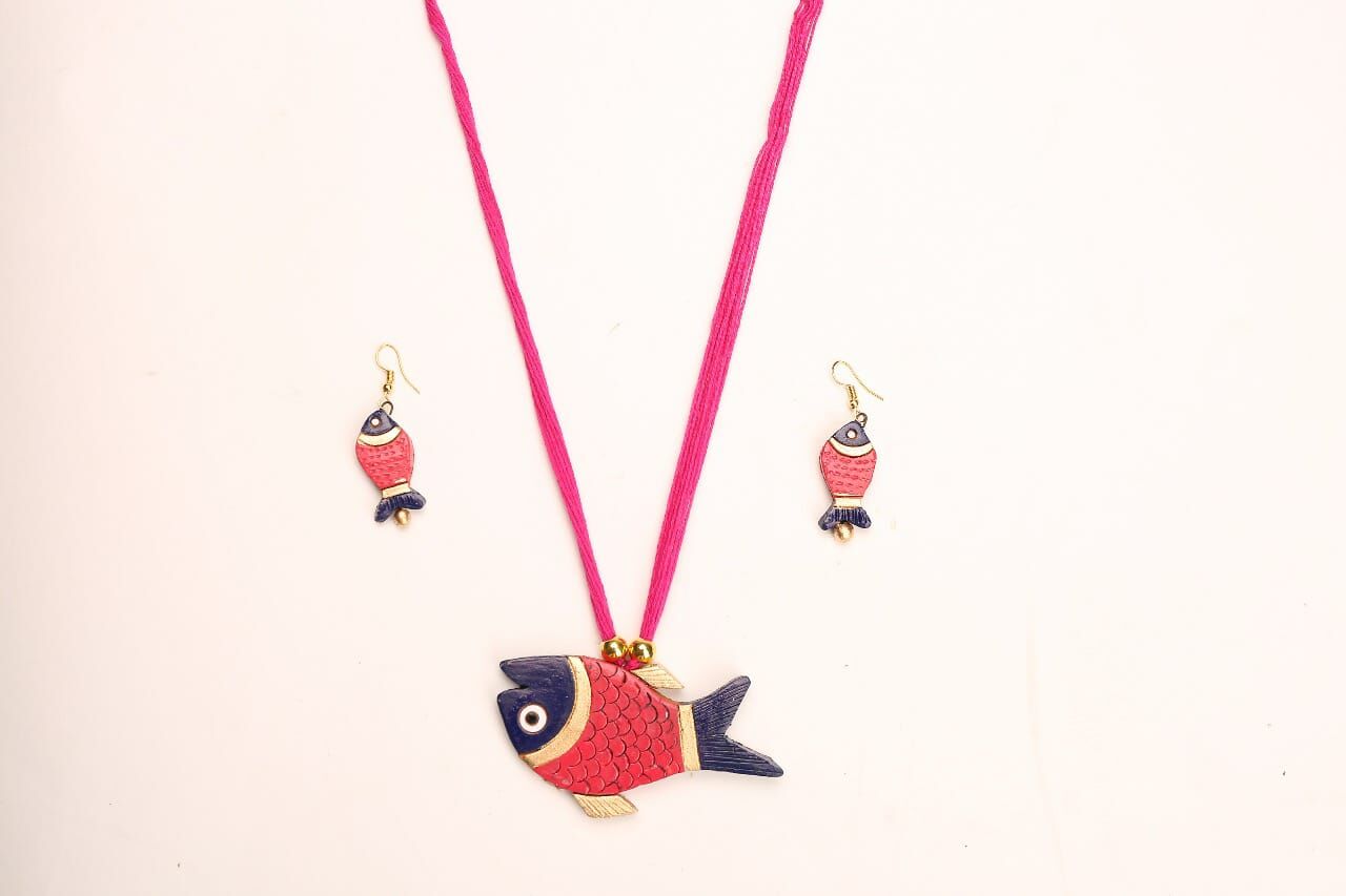 Fish Design Terracotta Necklace Set. Pink & Blue necklace set, Yellow & Red necklace set.